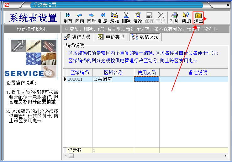 “區(qū)域”的意思就是,你想把電表分成幾個區(qū)域使用,你就設(shè)置幾個區(qū)域。如(你有6只電表,想分成ABC三個區(qū)域,A區(qū)的用戶 不能在BC區(qū)使用,B區(qū)的用戶不能在AC區(qū)使用,C區(qū)的用戶不能在AB區(qū)使用。 如果想讓所有的用戶在所有的電表上都能使用的話,就1個區(qū)域就可以了)。
