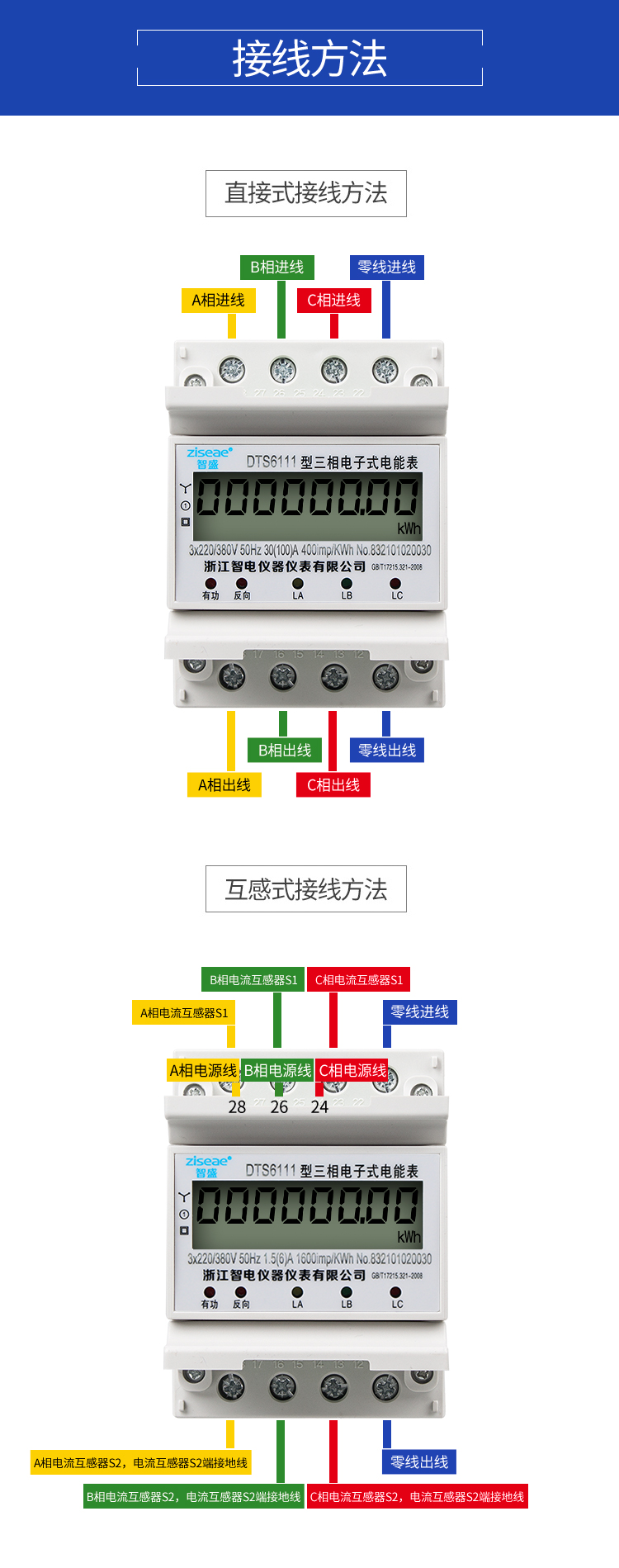 DTS6111、DSS6111型4P三相導軌式電能表(單顯電量)