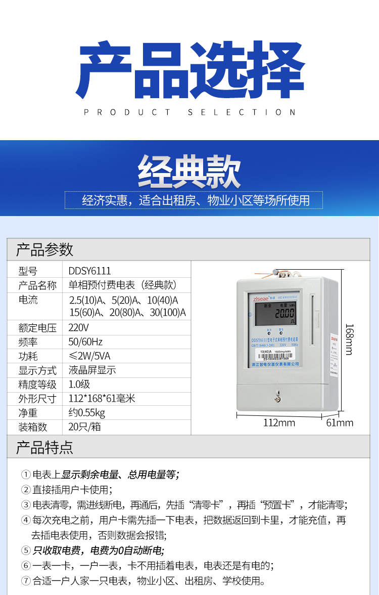 DDSY6111型電子式單相預付費電表,采用集成電路設計,全自動表面貼裝(SMT)生產工藝制造。電能表的線路設計和元器件選擇以較大的環(huán)境允差為依據(jù),可保證整機穩(wěn)定工作,精度高、高過載、低功耗,可靠性能高。內置磁保持繼電器。通過控制繼電器實現(xiàn)控制負載的通與斷,實現(xiàn)督促用戶先買電后用電的功能。
