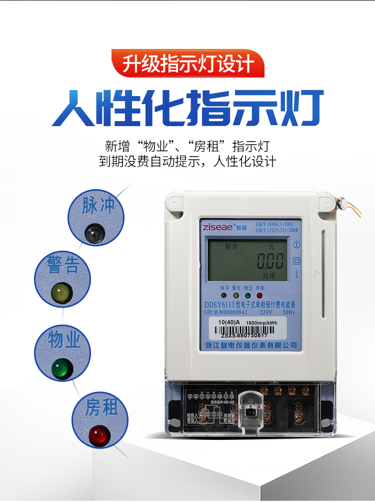 14、 購電提醒:當表內剩余電量小于“報警電量”時,“報警指示燈”將常亮提醒。