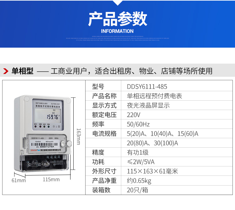 訂購產品: 單相遠程智能電表485款