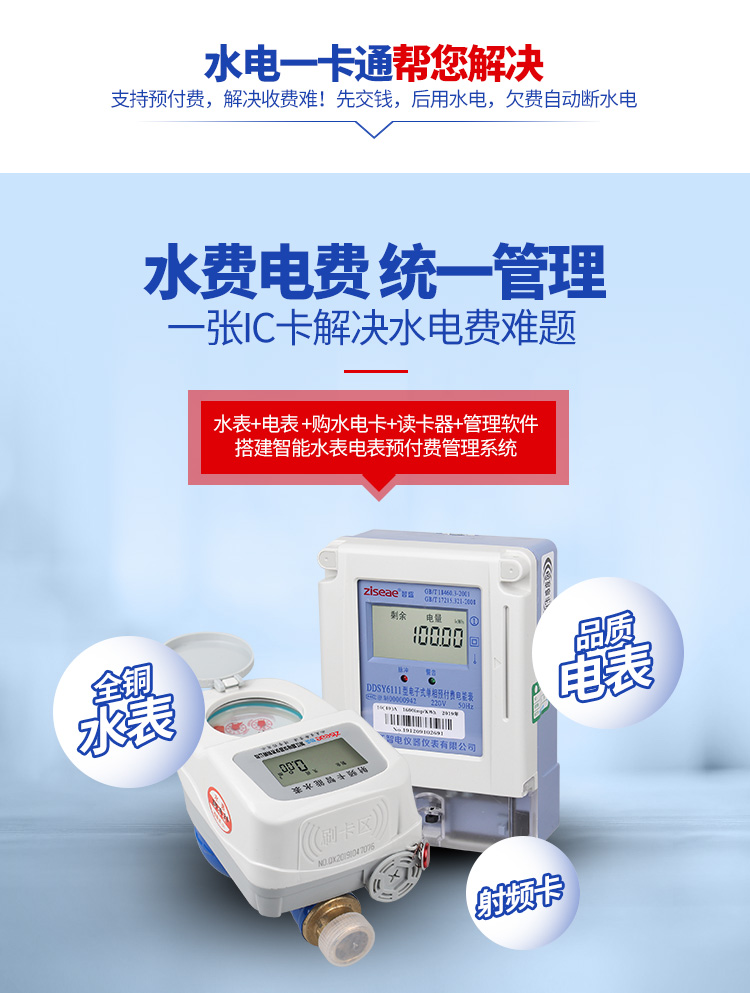 我公司生產(chǎn)的智能水表與電能表實(shí)現(xiàn)一卡通,用戶只需一張卡,即可同時管理家中所用的電表、水表。