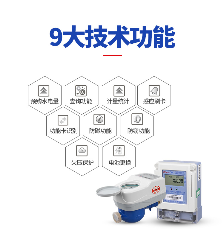 1、概述預(yù)付費(fèi)水表是以旋翼式水表為基表,由干簧管取信裝置、低功耗電控閥門、微電腦控制系統(tǒng)、射頻卡信息系統(tǒng)集合而成的智能水表。該產(chǎn)品改變了傳統(tǒng)的用水收費(fèi)方 式,由“先用水后交費(fèi)”變?yōu)椤跋冉毁M(fèi)后用水”,   每次售水收款都有記錄,解決了“收費(fèi)難、賬目亂”這兩個水費(fèi)管理工作中的難題。有遠(yuǎn)傳抄表功能的預(yù) 付費(fèi)水表還可實(shí)時統(tǒng)計(jì)用水?dāng)?shù)量,為水費(fèi)結(jié)算提供依據(jù)。產(chǎn)品符合國家標(biāo)準(zhǔn)GB/T778-2007《封閉滿管道中水流量的測量、飲用冷水水表和熱水水表》的全部技術(shù)要求。