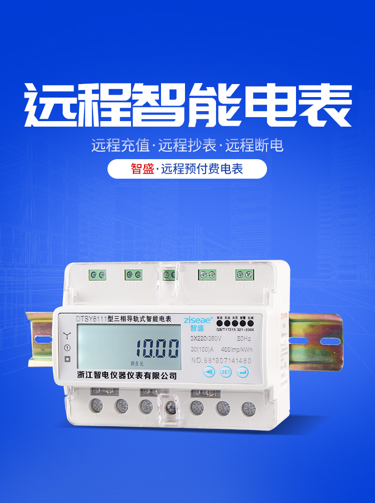 型號:DTSY6111三相遠程充值電表導軌式